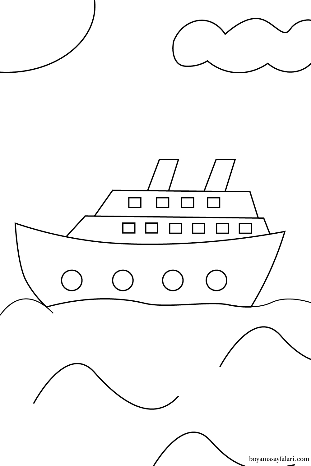 Okul öncesi gemi boyama sayfaları sanat etkinliği. Gemi boyama sayfası çıktı al basit gemi resmi boyamaları.