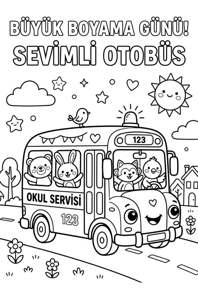 Boyama etkinlikleri çocukların gelişimine katkı sağlar. Otobüs boyama sayfası sayesinde çocuklar:
